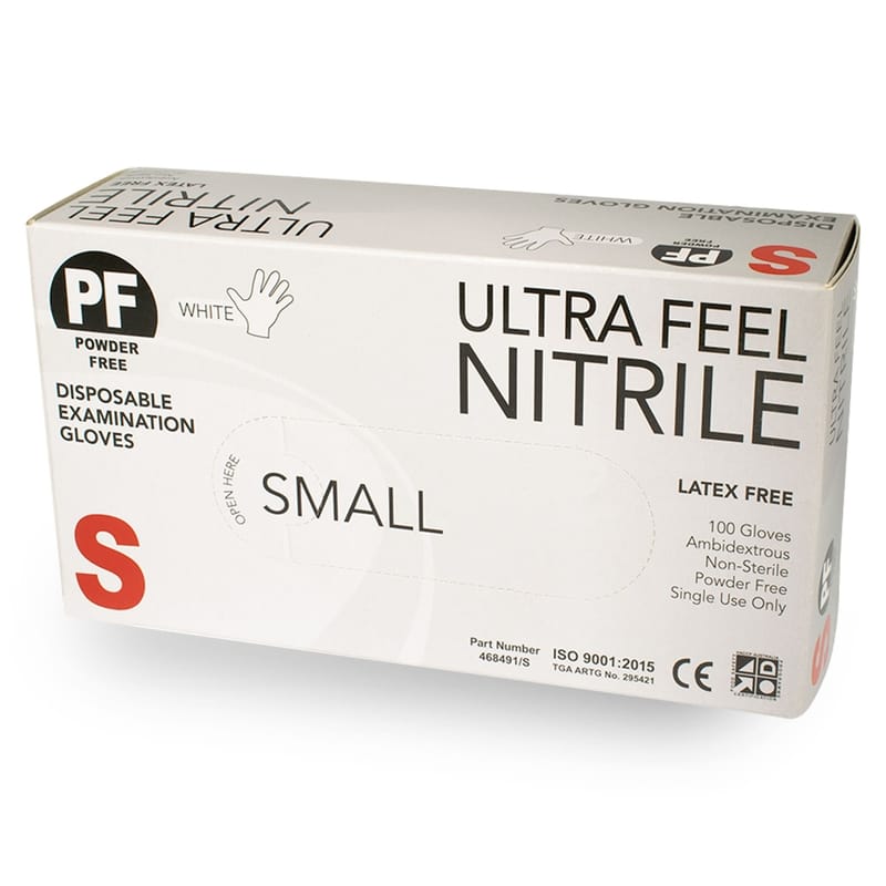 Nitrile Disposable Powder Free Gloves (White) ULTRA FEEL