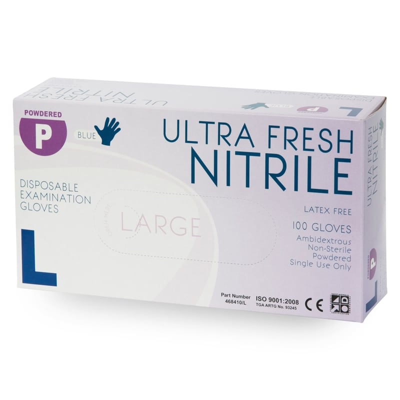 Nitrile Disposable Powdered Gloves (Blue) ULTRA FRESH